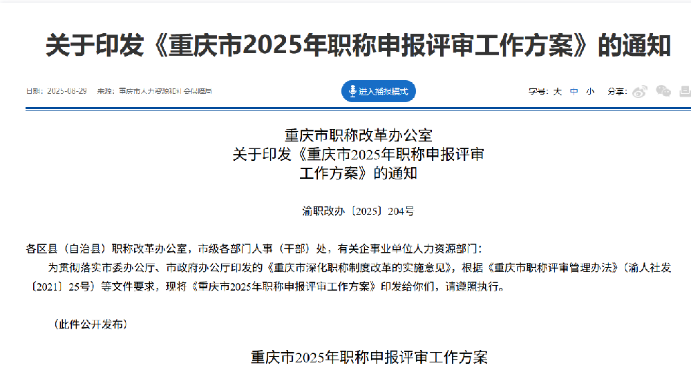 重慶市2025年職稱申報(bào)評(píng)審工作方案出通知啦!